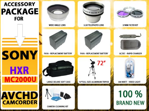 Discount Advanced Accessory Kit for Sony Hxr-mc2000u Shoulder Mount Avchd Camcorder Including Wide Angle Lens, 3.5x Telephoto Lens, 2x-extended Replacement Life Batteries, Deluxe Large Soft Case, 72 Inch Tripod & Much More!!