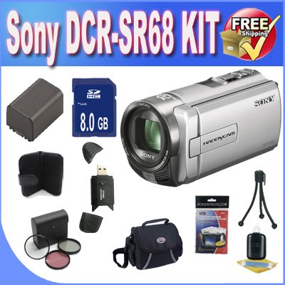 Best Buy Sony DCR-SR68 80GB Hard Disk Drive Handycam Camcorder + 8GB SDHC Memory + Extended Life Battery + 3 Piece Filter Kit + USB Card Reader + Memory Card Wallet + Deluxe Case + Accessory Saver Bundle!